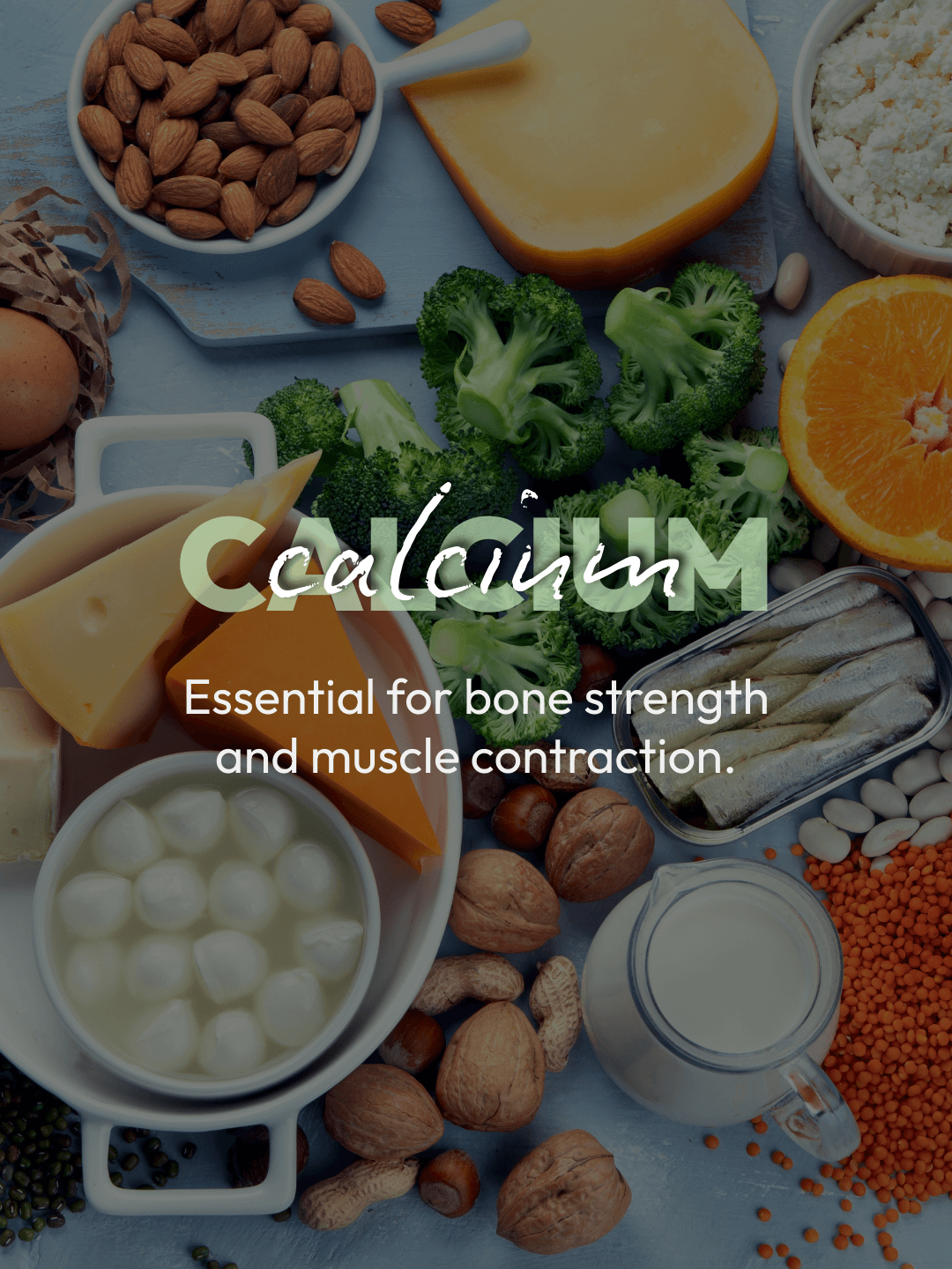 Calcium is critical for bone mineral density, muscle contraction, and nerve signaling, and inadequate intake increases the risk of stress fractures and bone injuries. Primary sources include dairy products, fortified plant milks, calcium-set tofu, sardines with bones, and some leafy greens (such as kale and bok choy).